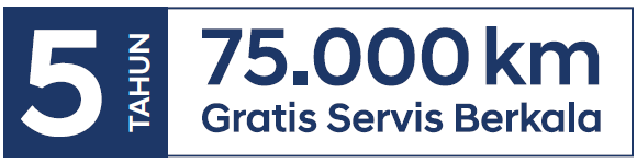 Gratis jasa dan suku cadang servis berkala 5 tahun/75.000 km, mana yang tercapai terlebih dahulu.