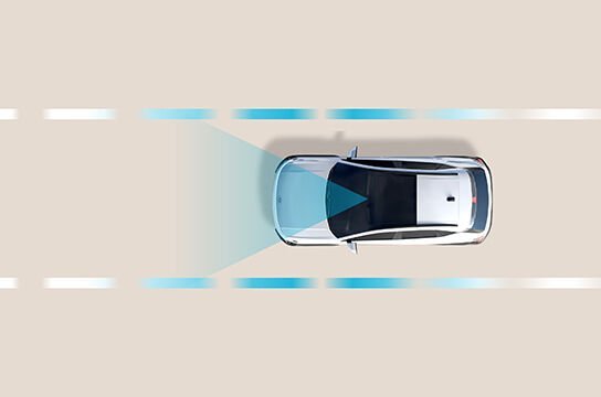 Menggunakan kamera depan untuk mendeteksi marka jalan dan lalu lintas, untuk membantu pengemudi agar kendaraan tetap di tengah jalur.